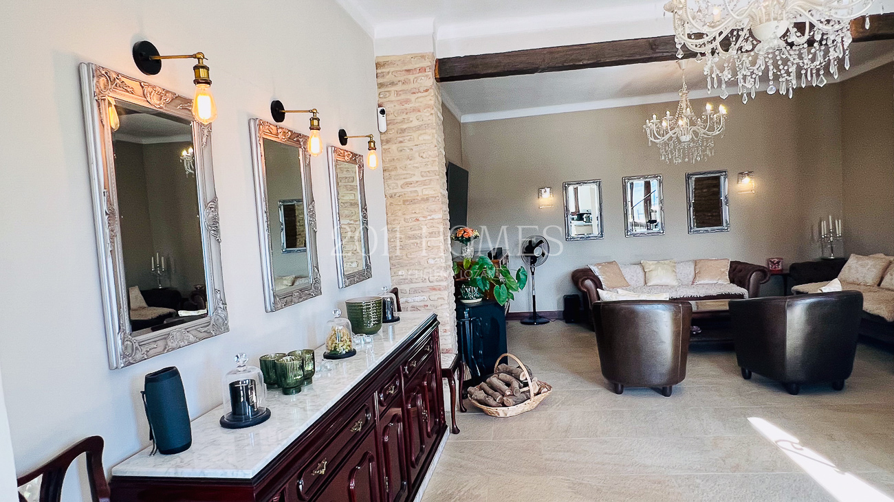 The property also includes a staircase leading down to a private 75 m² garage, accessed from a lower street via a gated entrance shared with a small community of just seven owners. The garage currently accommodates multiple vehicles but could easily be adapted into a workshop or hobby space while still providing parking for two cars. This is the only part of the property with potential for further development, as the rest of the home is presented in immaculate condition.